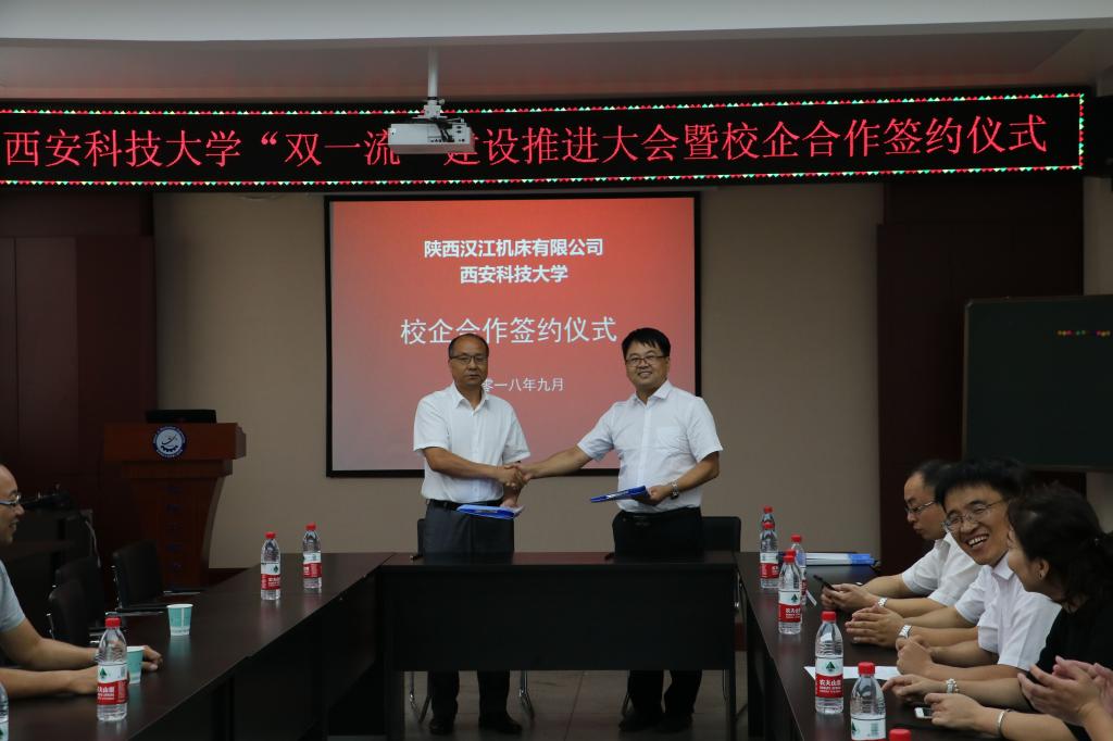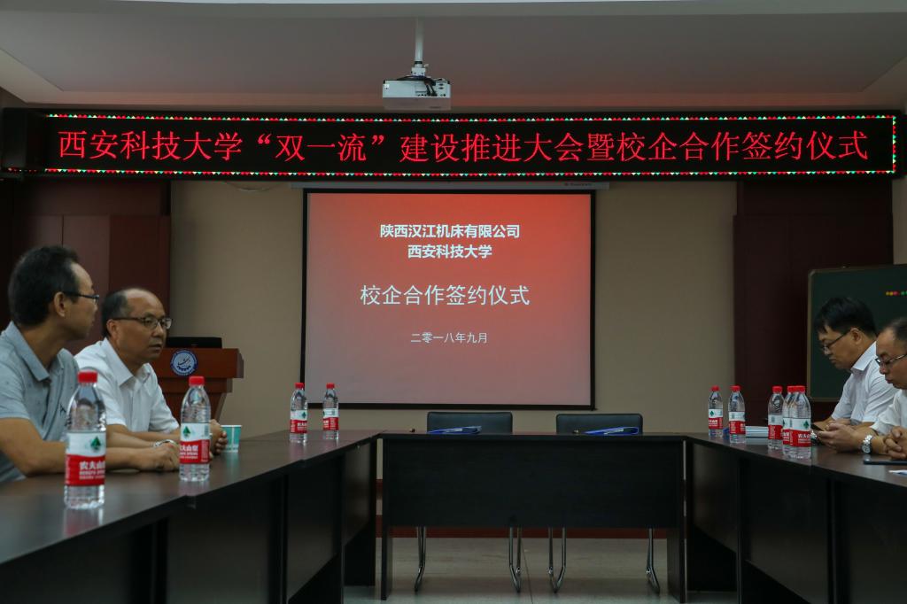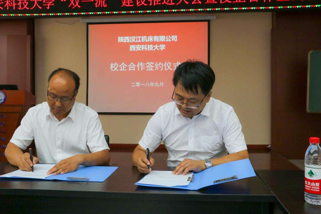 签约仪式在临潼校区机械学院会议室进行,仪式前双方就红宝石9999hbs在线登录、本科实习基地、科研项目合作等议题进行了友好深入的交流,并由汉江机床有限公司马部长与机械学院院长张旭辉分别代表两家单位签署了合作协议。参会的学院领导有机械学院党委书记汪卫兵、院长张旭辉、党委副书记李婉丽、副院长寇发荣、党委副书记李婉丽、副院长赵栓峰,学院30余名师生也参加了签约仪式。