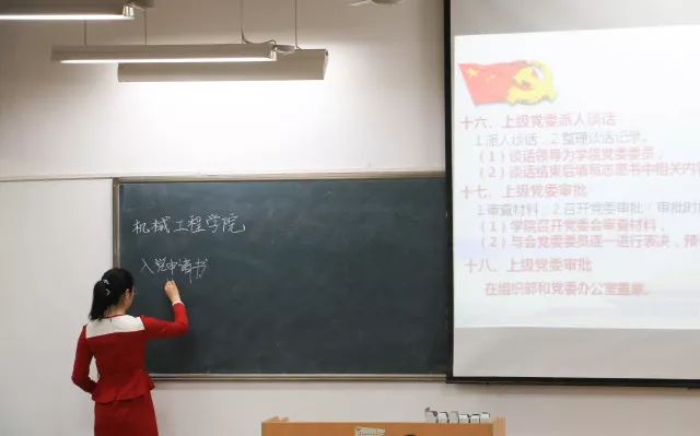 5月21号晚上7点,机械工程学院第五十一期初党培训第三讲在九教104教室顺利进行。机械工程学院2015级辅导员刘烨老师以“党员发展程序”为主题,给大家讲述了成为一名党员的具体流程。